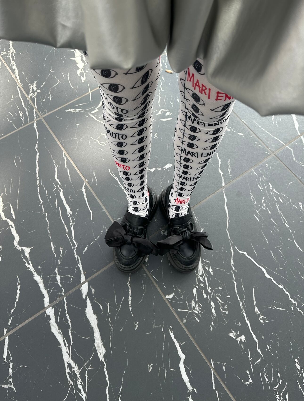 サイズF MARI ENOMOTO目の柄オリジナルテキスタイル。 生地が厚めなので透けることなく着用できます。 夏でも冬でも着用可能なアイテムです。